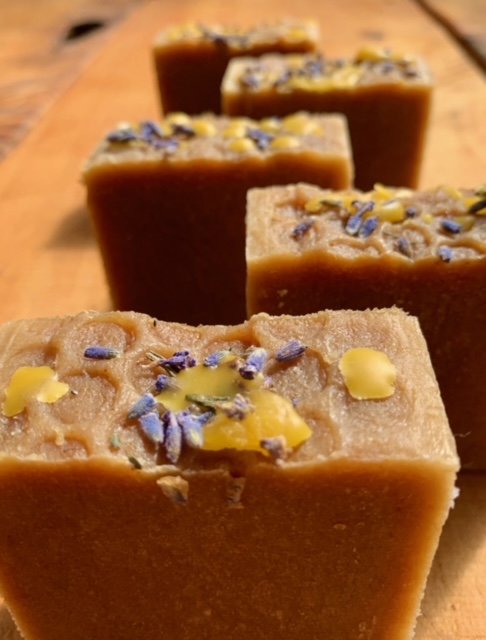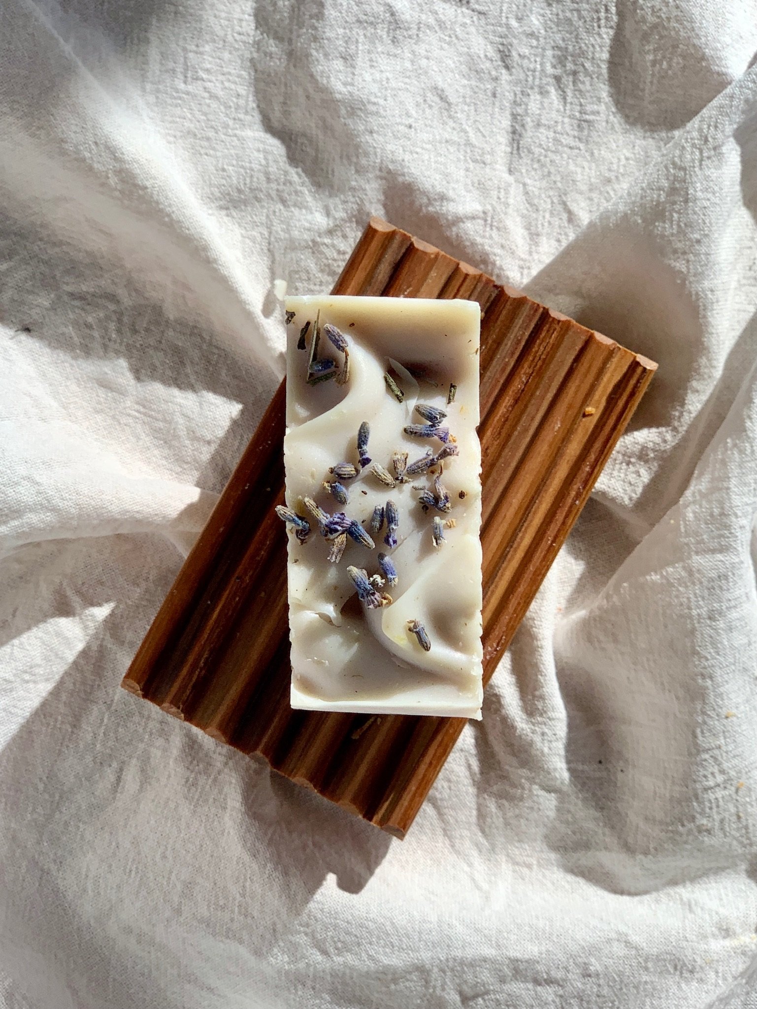 Made with all natural coconut oil, olive oil, shea butter and a very mild hint of lavender fragrance
