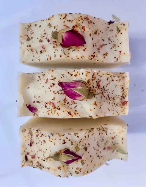Made with all natural coconut oil, olive oil, shea butter and a very mild hint of rose fragrance